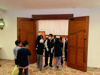 7:30から,朝食の時間です。集合時刻よりも前に集まり,開場を待っています。昨日の楽しかったことを話しているのでしょうか?