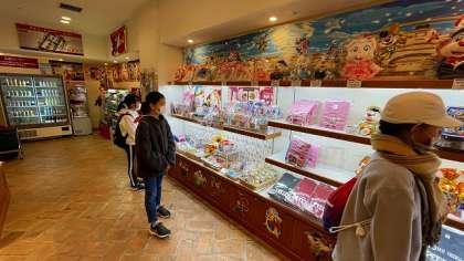 退館式のあと,志摩スペイン村がオープンするまでの間に館内のスーベニアショップでお買い物タイムです。