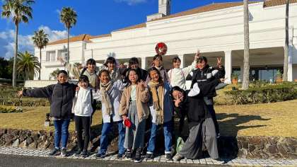 お買い物タイムを終え,「志摩スペイン村」の開園を待ちます。少し寒そうですが,空はすばらしい青さです!