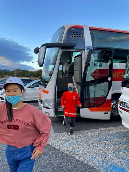 6年生は,滋賀県の甲南PAで最後の休憩をしています。この後,学校に向けて出発します。ここまでは,ほぼ予定通りの時間で帰ってきています。