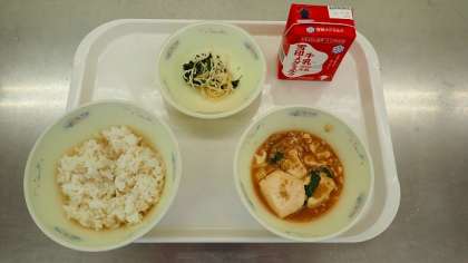 「マーボ豆腐」はトウバンジャンがほどよく効いており,ピリッとした味を楽しむことができました。とうふもたっぷり入っており,食べ応えもありました。「切り干し大根の炒めナムル」は,切干し大根に米酢が染みており,口の中がさっぱりしました。