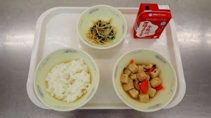 「高野どうふと野菜のたき合わせ」は,高野どうふや野菜におだしの味がよく染みており,とてもおいしくいただきました。特に,にんじんは驚くほどやわらかく,歯がいらないほどのやわらかさでした。