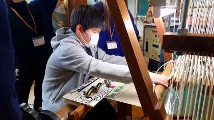 「むずかしかった。」「緊張した。」「おもしろかった。もっとやってみたい。」など,いろいろな感想が聞かれました。織り始めた6年生の「幡」は,卒業式の日に式場に飾られます。乾隆小学校ならではの卒業記念です。みんなでがんばって仕上げてくれると期待したいます!