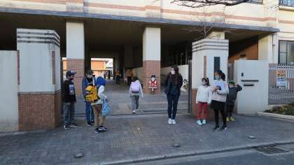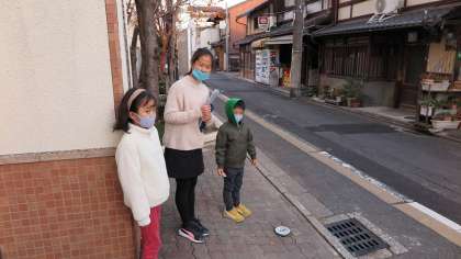 今日は,冬型の気圧配置ということもあり,北風が大変冷たい朝となりました。その中で,乾隆の子ども達は,挨拶運動を頑張っています。
