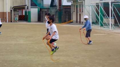 前とびのあとは,後ろとびにも挑戦しました。どんな腕の回し方をするとよいかを確かめながら練習しました。