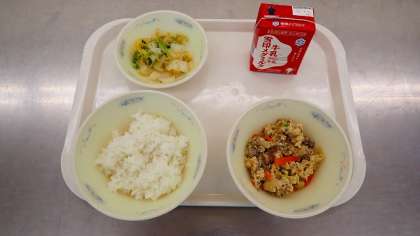 「他人煮」は,牛肉と鶏のたまごを使っているので「他人」煮と言います。ごはんによく合う献立でした。「春菊」は,春に菊に似た花が咲くため春菊と呼ばれるようになりました。関西では「きく菜」とも呼ばれています。今日は,冬においしい春菊と白菜を使ってごま煮にしました。