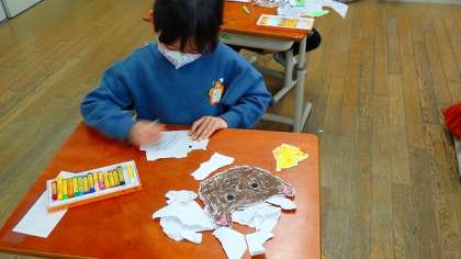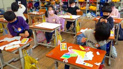 1年生は,図工の「いろいろなかたちのかみから」の作品づくりをしています。