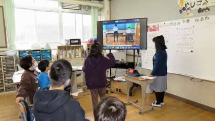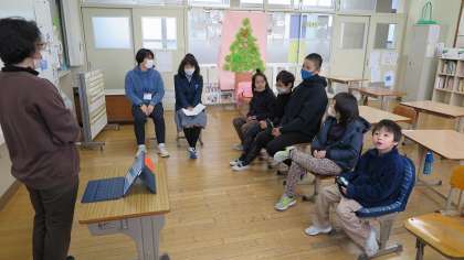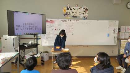 今日は,コスモス学級に乾隆小学校を卒業した中学生のお姉さんが交流をしに来てくれたました。中学校でどんな勉強や活動をしているのかをGIGA端末で説明してもらいました。素敵なプレゼンテーションで中学校の様子がよくわかりました。6年生の二人も中学校への進学がより楽しみになったようです。