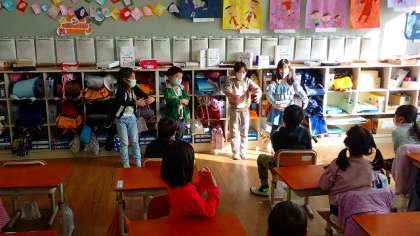「はる なつ あき ふゆ」の1番(春)〜4番(冬)の歌詞に合った「振り」をつけて,グループごとに発表しました。「大きな」や「きらきら」など,歌詞から思い浮かべる様子をうまく表現していました。
