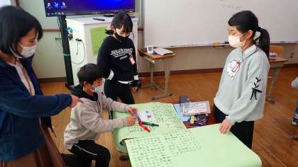 これまでの学習でわかったことや考えたこと,これから大切にしていきたいことなどをグループごとに新聞にまとめています。伝えたいことが読み手に伝わるように,書き方を工夫して新聞づくりをしています。