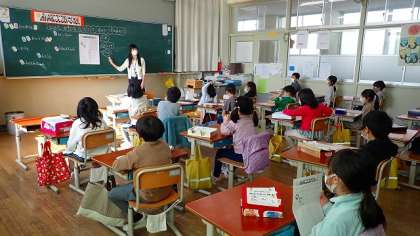 これまでに,1年生は家族の「にこにこさがし」をしてきました。家族のにこにこを見つけてカードに書いたり,「パッチンカメラ」で撮ったりしました。そして,家族に「どうしてにこにこしていたのか」をインタビューしてきました。今日は,それを交流する学習です。
