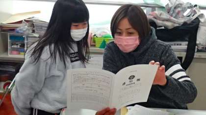 担任の先生は,通知票を見ながら,一人一人の2学期のがんばりを話してくださいました。