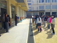 登校してきた子どもたちは,真っ白な運動場を見て大喜びです。運動場に飛び出して,雪遊びを楽しみました。