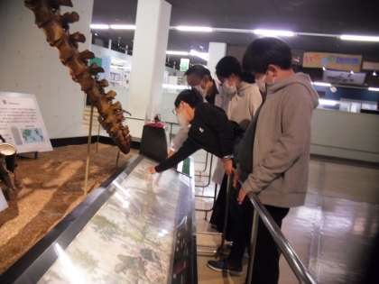 バスに乗って青少年科学センターへ出発!少し早めに着いたので,特別に展示場を見学させてもらいました。科学の不思議に触れ,大興奮の様子でした。