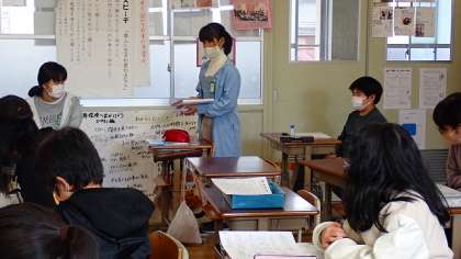 戦後の日本がどのように変わったかについて,これまでに学習したことをもとにまとめ,発表しました。民主主義の世の中になったこと,女性の参政権が認められ,平等な世の中に近づいたこと,生活がより豊かになったことなどの視点でまとめていました。