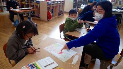 数字をていねいになぞって書いたり,自分に関係のある行事を書き加えたりして,それぞれに合っためあてのもとにカレンダーづくりを楽しみました。