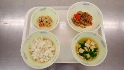 今日は,2月の和献立の日です。和食に欠かさないものの一つが「だし」です。今日は,「おから」に煮干し,「花菜のすまし汁」にこんぶとかつおぶしを使って「だし」を取りました。それぞれのだしのうま味をみつけて,おいしくいただきました。