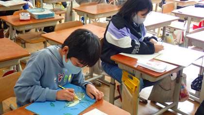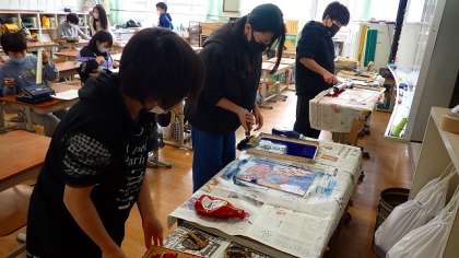 5年生は,図工の「ほり進めて刷り重ねて」の学習をしています。