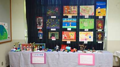 コスモス学級は,「小さな巨匠展」で展示する予定だった作品も含め,平面・立体の量帆の作品を展示しました。