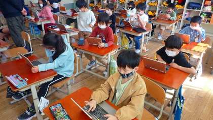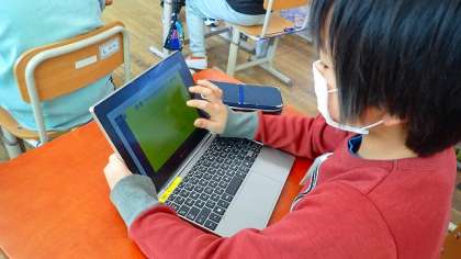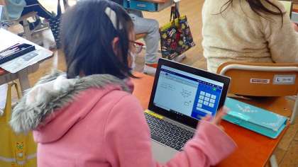 2年生は,今度のお楽しみ会で何をするかについて,Formsのアンケートで回答しています。アンケートに答えた子は,デジタルドリルを使って自主的に復習をしていました。