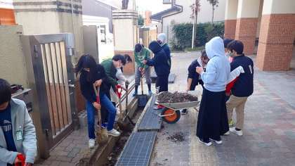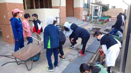 卒業を来週に控えた6年生が,学校のそうじをしてくれました。今年は,正門側の側溝と,オクトパス周辺のそうじに取り組みました。