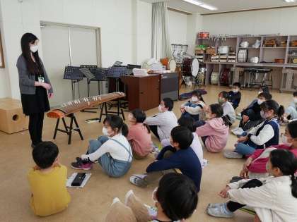 4年生は,音楽の学習で『筝(そう)』に触れる体験をしました。