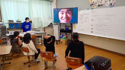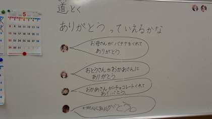 動画の教材を見たり,家族へのありがとうのメッセージを発表したりしていました。