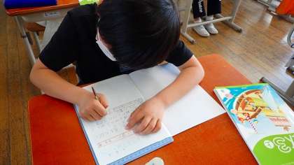 100のまとまりをもとに計算の仕方を説明する学習を通して,算数科の学習の進め方を確かめました。ノートには,自分なりの説明をしっかり書きこんでいる様子が見られました。