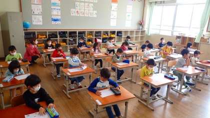 1年生は,今日も先生のお話をしっかり聞いています。