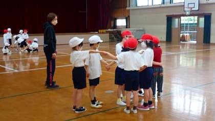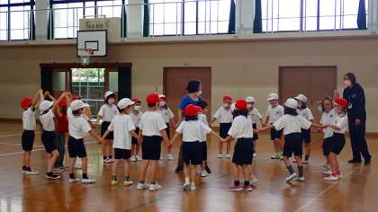 2年生は,体育の「からだほぐしのうんどうあそび」の学習をしました。
