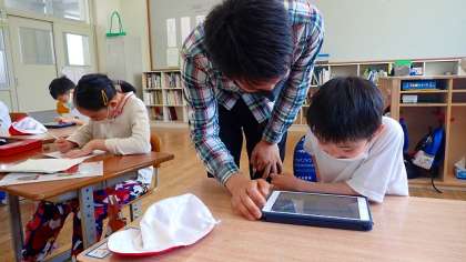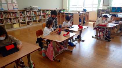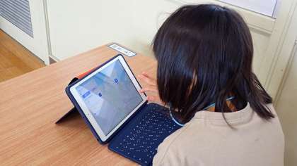 コスモス学級では,iPadを使ってそれぞれの課題に取り組んでいます。iPadを使うことで,一層集中して課題に取り組むことができているようです。
