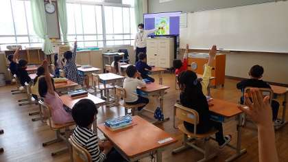 1年生は,算数の「わくわく すたあと」の学習をしています。