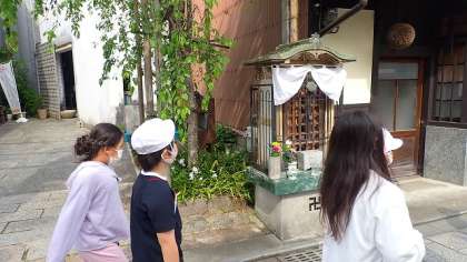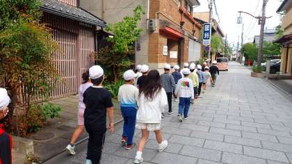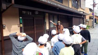 今日は,町たんけんの3回目に出かけました。乾隆学区には,地域の地場産業である西陣織に携わっておられる工場やお店があります。「織」や「機」と書かれている看板を探しながら歩きました。これまではあまり気に留めなかったかもしれませんが,たくさんの看板を見つけることができました。