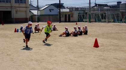 3年生になって,リングバトンから普通のバトンに代わりました。バトンパスのときに「リード」をするのも初めての経験です。今日は,上手くいかないことがたくさんありましたが,これから工夫できるところがたくさんあるとも言えます。これからの学習が楽しみですね!