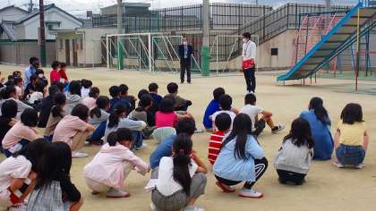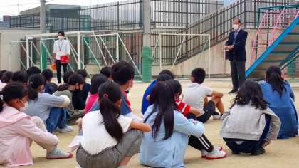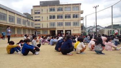 今回の避難にかかった時間は3分20秒でした。近頃,京都でも少し大きい地震が頻繁に起こっています。今回の避難訓練には,子どもたちも真剣に取り組みました。いざという時にも,今日のように落ち着いて避難できるようにしてほしいと思います。
