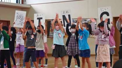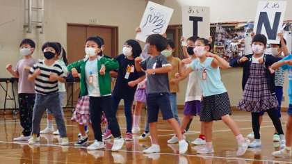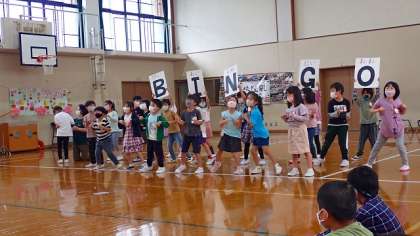 2年生は「小犬のビンゴ」に合わせて,歌ったり手拍子を打ったりしました。「B][I][N][G][O]の文字が一つずつ手拍子に変わっていきます。2年生の子どもたちも担任の先生も,ノリノリ全力で踊って踊ってくれたので,みんなで一緒に手拍子を打ちながら楽しい時間を過ごしました。