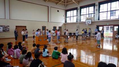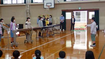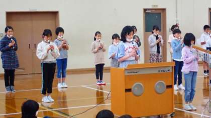 5年生は,「小さな世界」の合奏をしました。リコーダー,木琴,鉄琴,オルガンでの合奏です。家での練習だけでなく,休み時間にも自主的に練習をしていたそうです。心のこもったやさしい音色を響かせてくれました。
