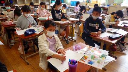5年生は,図工の「ミラクル!ミラーステージ」の作品づくりに取り組んでいます。