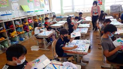 3年生は,「絵のぐ+水+ふで=いいかんじ!」の学習をしています。