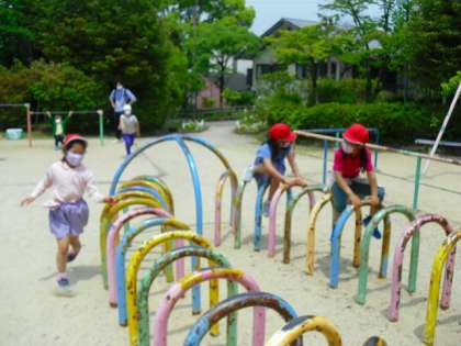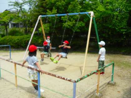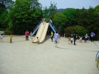 公園にあるたくさんの遊具も使って,思う存分楽しんでいます。