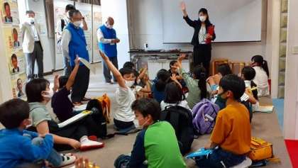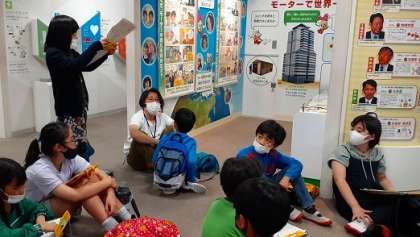 企業のブースを見て学んだことを,みんなでふり返りました。世界の最先端の技術をたくさん見て,学んだことを発表することができました。