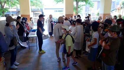 はじめの説明,注意事項を聞いた後,いよいよ出発です。いってらっしゃい!