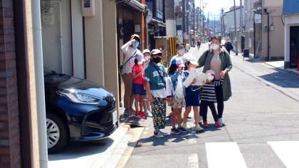 1〜3年生は4か所,4〜6年生は8か所のチェックポイントを回って問題に答えます。地図とチェックポイントの写真を手掛かりに,ポイントを探していきます。