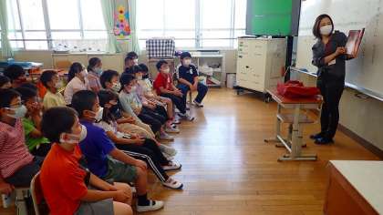 今日は,1・3・4・5・6年生の教室に来てくださいました。それぞれの学年に応じて選んでいただいた本を読んでくださいました。子どもたちは,真剣にお話に耳を傾けています。