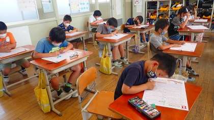 学習したことをよく思い出して,最後まであきらめずに問題に取り組んでほしいと思います。自分の名前もていねいに書くことができていました。