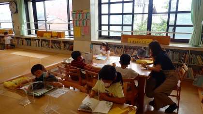 1年生は,図書館で読書に親しんでいます。気になった本を借りたり,図書室で静かに読書をしたりしていました。