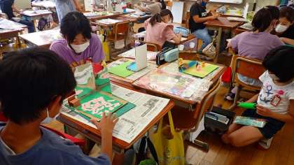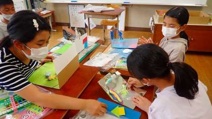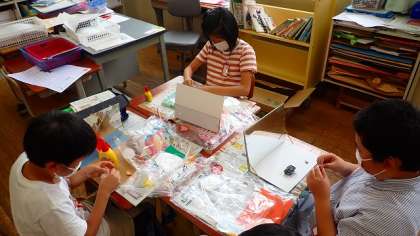 5年生は,図工の「ミラクル!ミラーステージ」の作品づくりをしています。