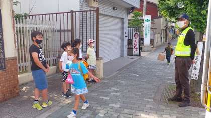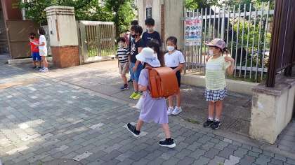 通用門側では,2グループの子どもたちがあいさつをしました。