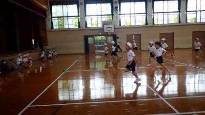 3年生にとっては,初めての種目です。はじめはゆっくりとしたペースで走り始めるので,余裕をもって走っていましたが,インターバルが短くなるにつれて表情が変わり,一生懸命走っていました。みんな,よくがんばりましたね。