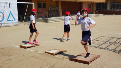 5年生は,体育の「走りはばとび」の学習をしています。